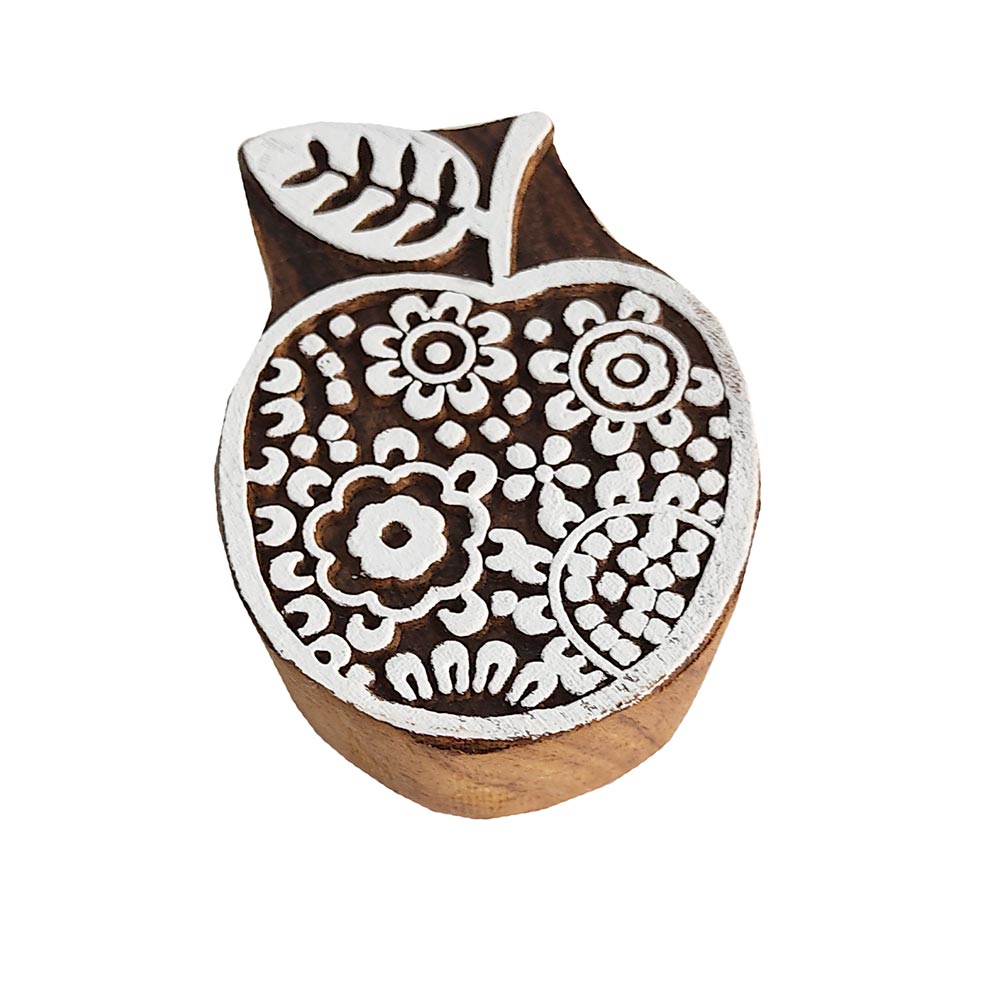 IN6-49-019 Stoffstempel "Apfel", natur, Lebbekholz, 7x5x2,5
