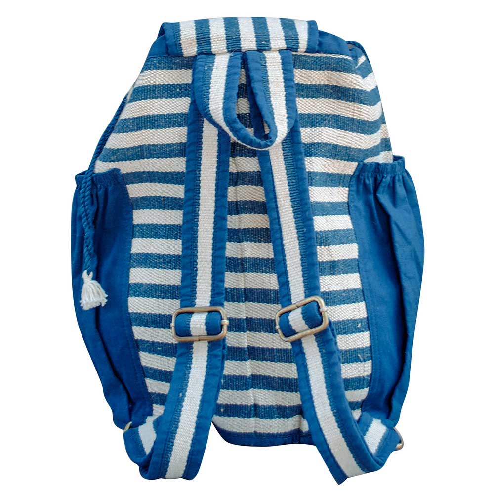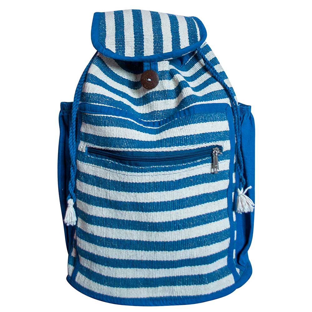 IN7-52-010 Rucksack, mit Kokosnussknopf, verstellbare Riemen, blau/natur gestreift, Baumwolle/Jute (60/40), 39x26x18