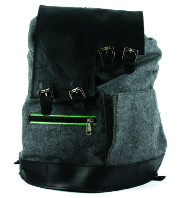 InfozeileFilz, recycelte Autoreifen, Gurte, Futterstoff: Polyester (grün), 30 x 18 x 40 cm