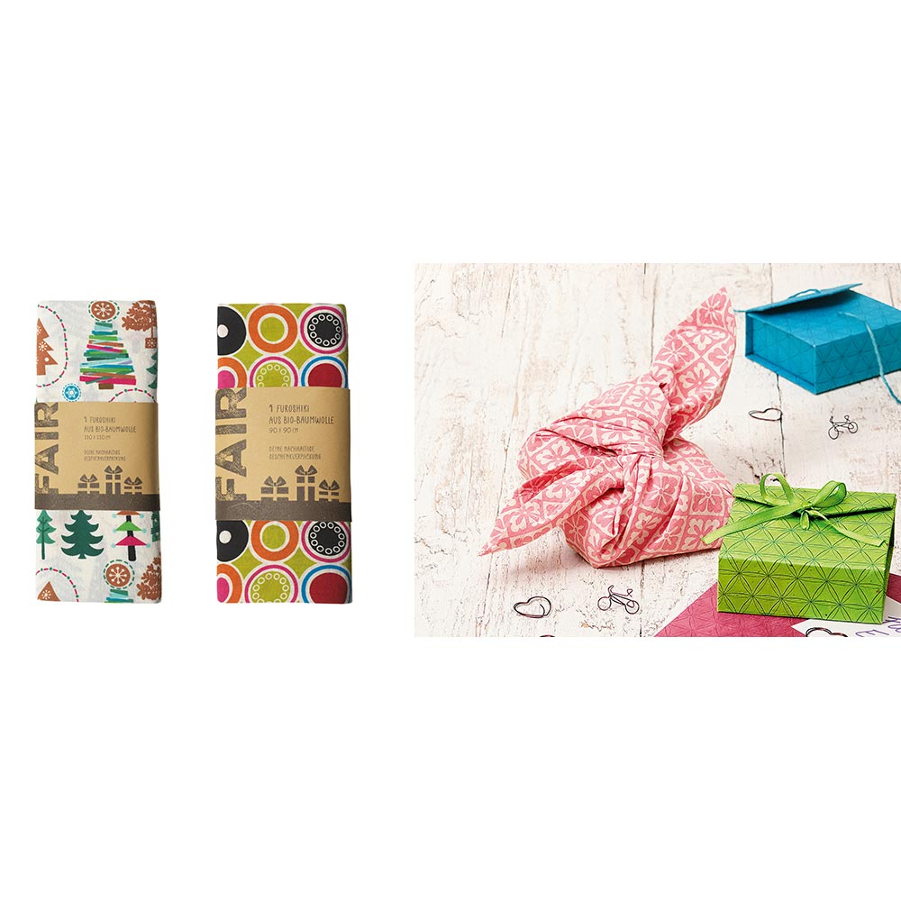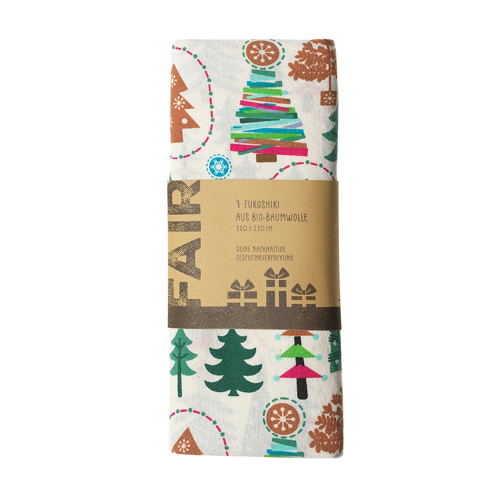 IN8-22-071-01 Furoshiki, nachhaltige Geschenkverpackung, Weihnachtsmotiv, Bio-Baumwolle, 110x110