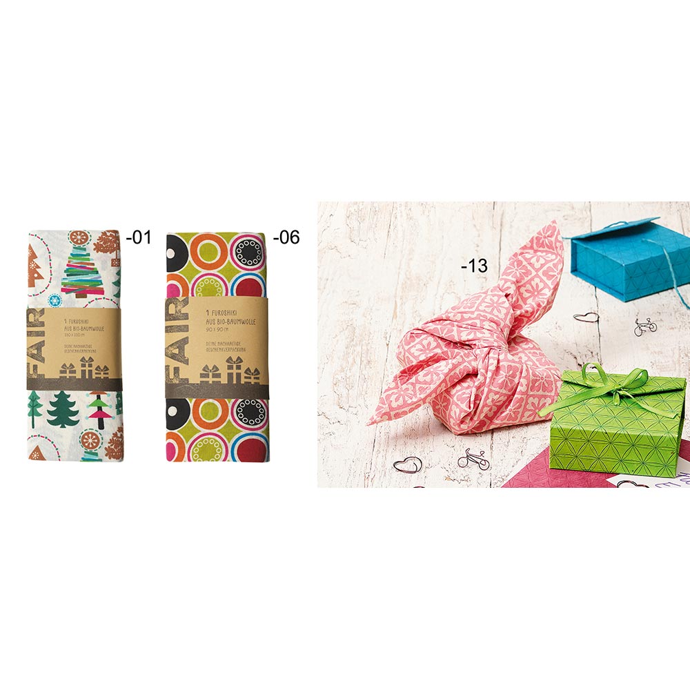 IN8-22-071-06 Furoshiki, nachhaltige Geschenkverpackung, hellgrün mit bunten Kreisen, Bio-Baumwolle, 110x110