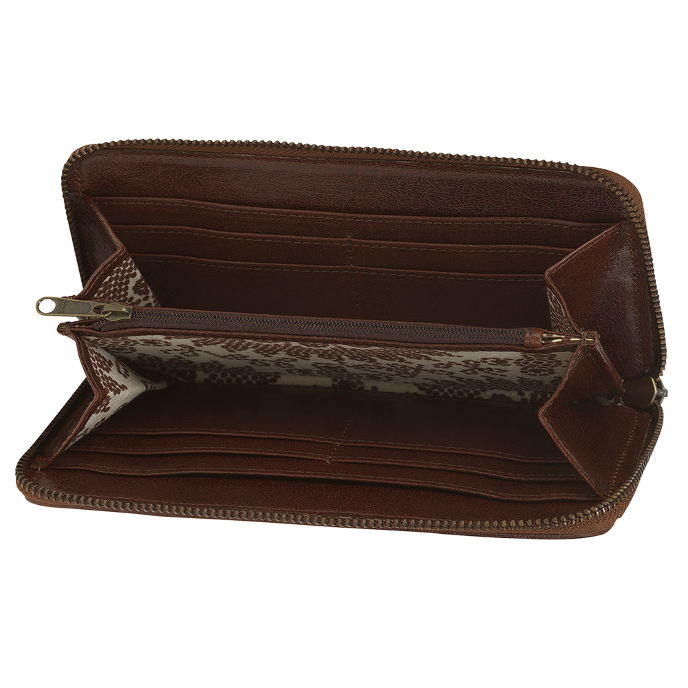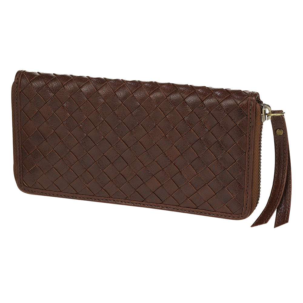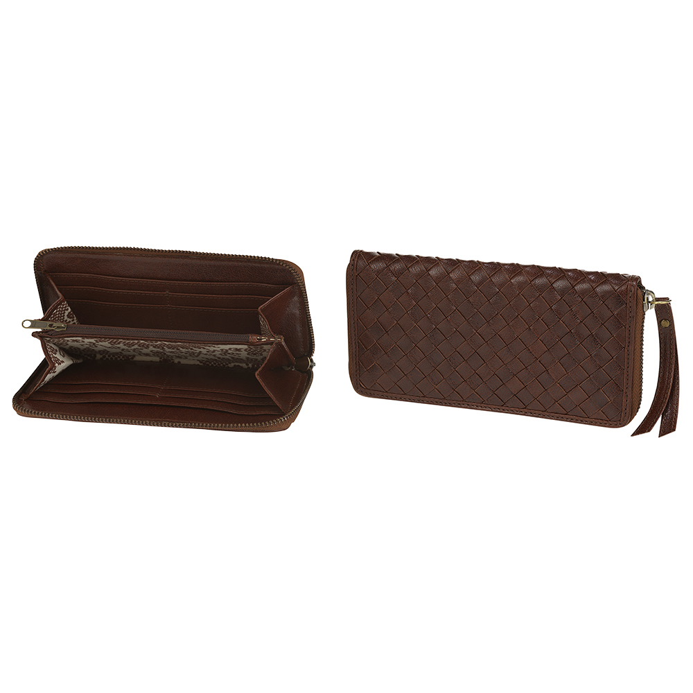 IN8-25-045 Geldbörse mit Münz- und Scheinfach und Karteneinteilung, mit Reißverschluss innen, kastanienbraun, eco-Leder, geflochten, 19x9,5
