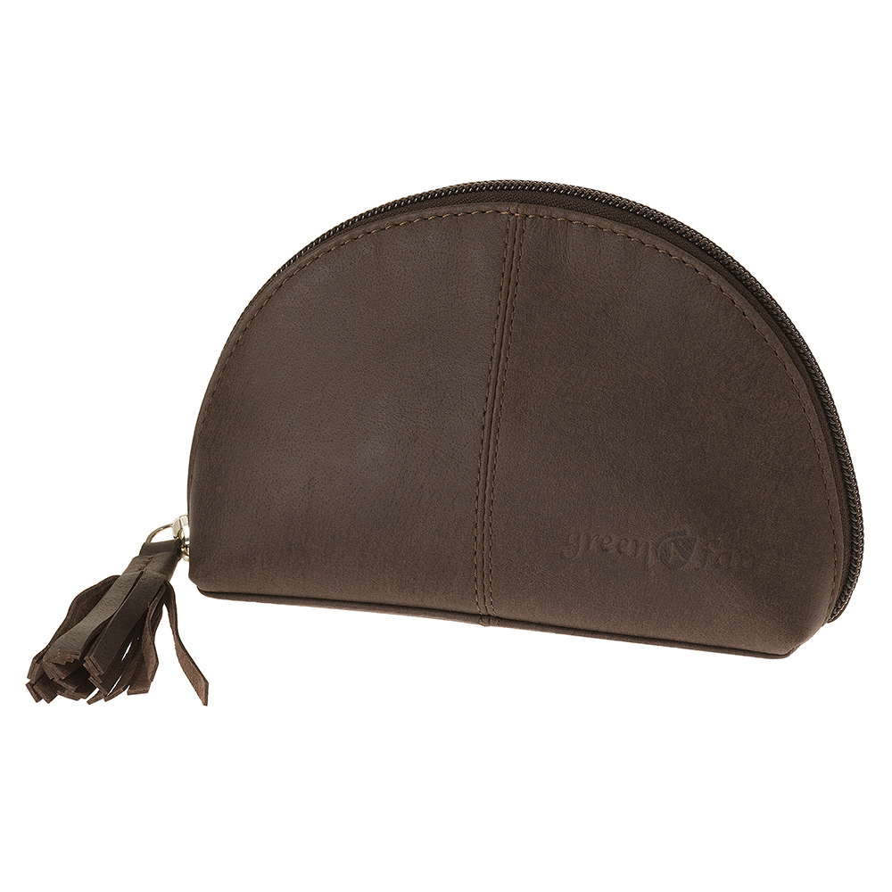 IN8-25-048-08 Kosmetiktasche, gefüttert, Reißverschluss mit Zierquaste, dunkelbraun, eco-leder, 15x10x4