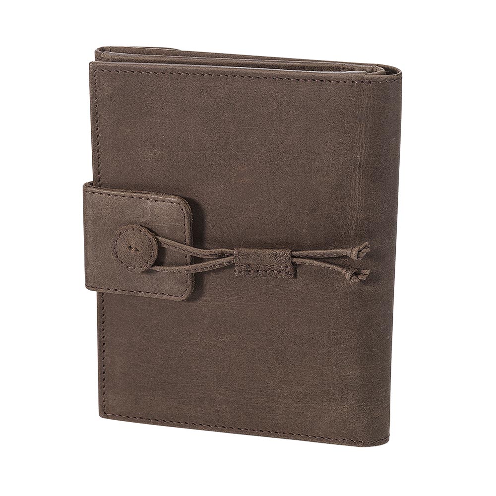 IN8-25-057-08 Geldbörse mit Münz- und Scheinfach, mit Schlaufenverschluss, Druckknopfverschluss innen, dunkelbraun, eco-Leder, 14x11x1,5
