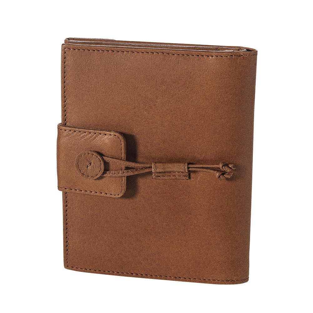 IN8-25-057-11 Geldbörse mit Münz- und Scheinfach, mit Schlaufenverschluss, Druckknopfverschluss innen, hellbraun, eco-Leder, 14x11x1,5