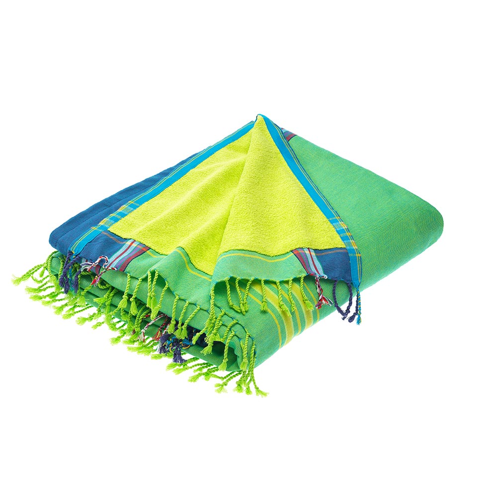 KE2-22-002-06 Kikoi, gewobenes Baumwolltuch/Handtuch mit Fransen, eine Seite Frottee, grün/grün, 100x165