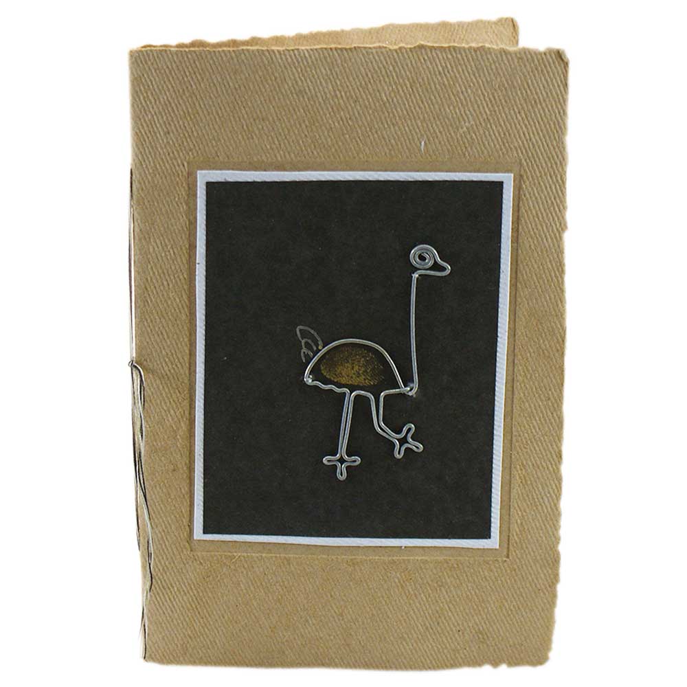 KE3-95-018 Grußkarte "Vogel Strauß", beige, mit Umschlag, handgeschöpftes Papier, 10,5x15,5