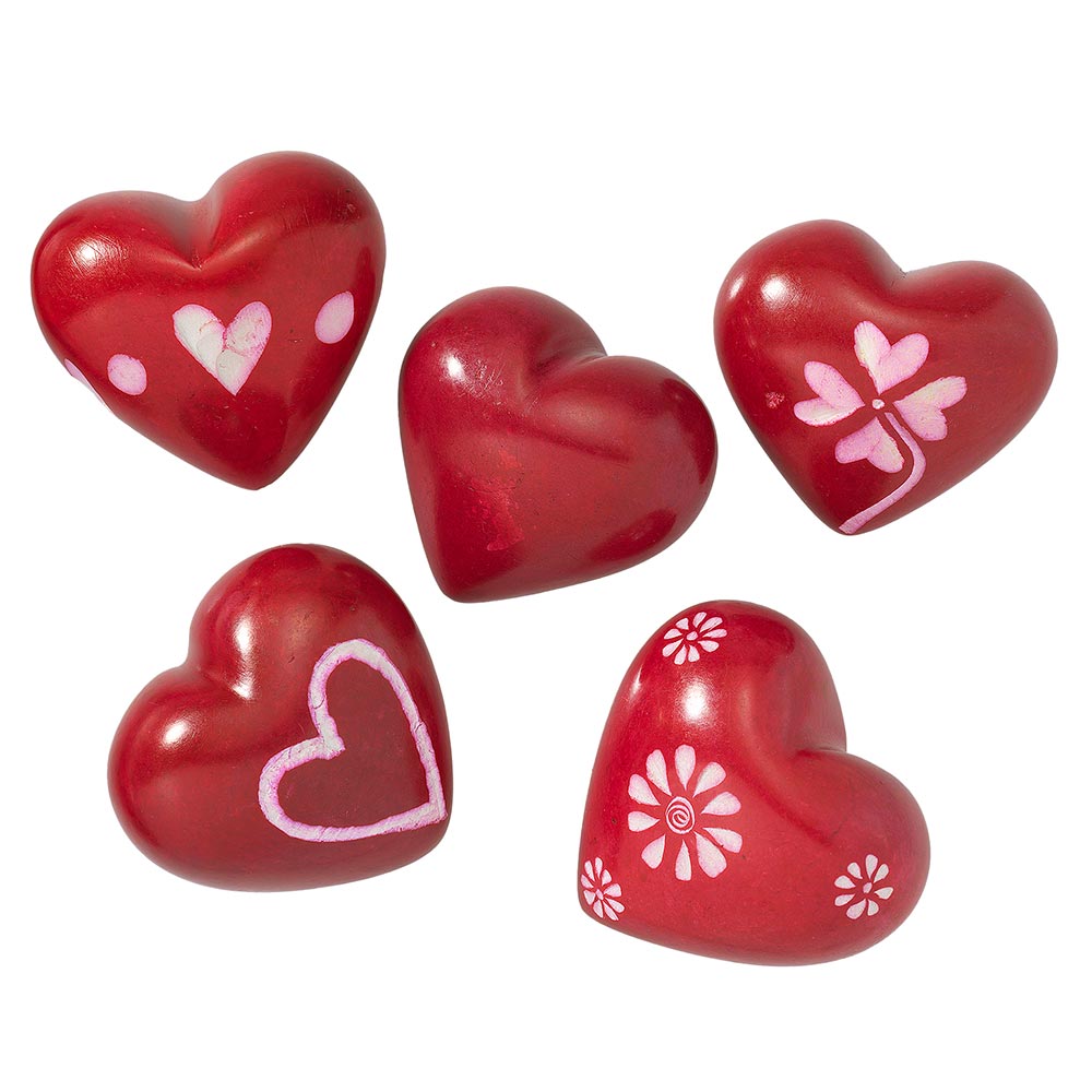 KE5-42-121 Herz, mini, unsortiert, Rottöne, diverse Muster, Speckstein, H3/B3