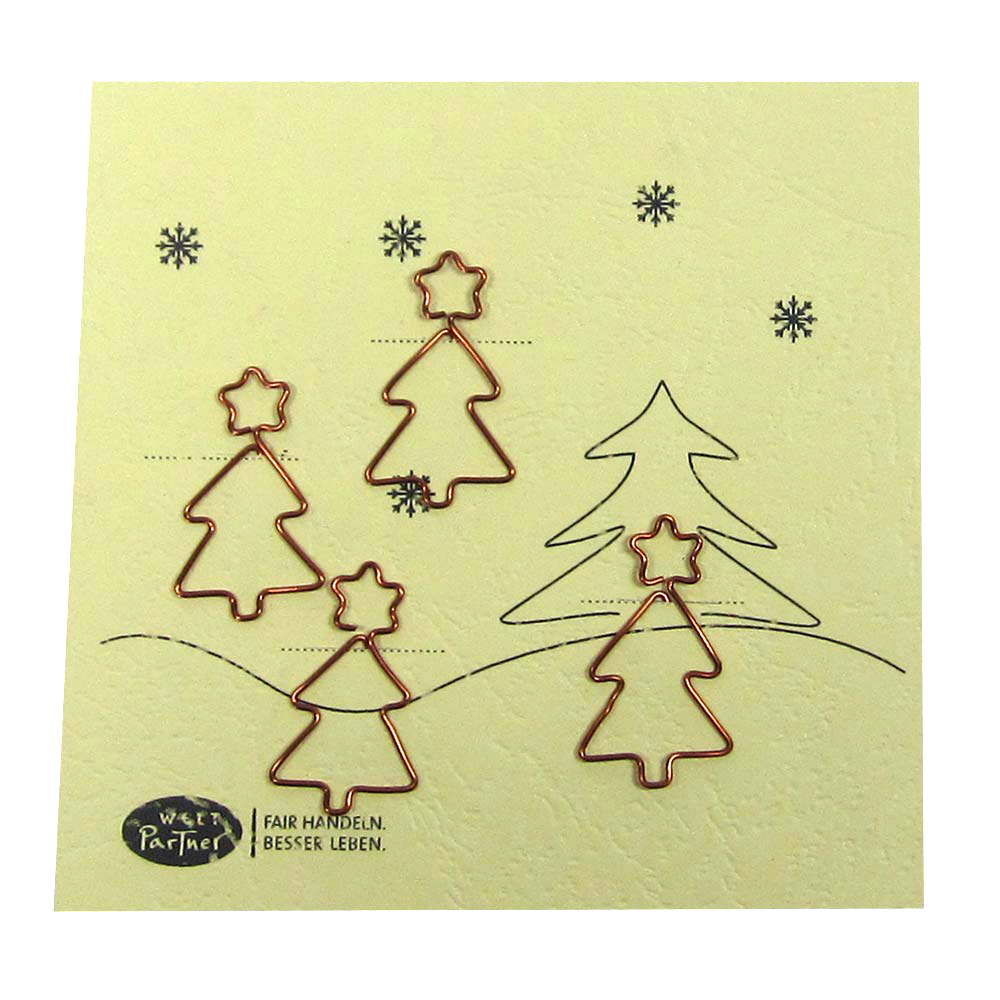 KE6-87-006 Klammern "Christbaum", Recyclingdraht, 4 Stück, 3x3, auf Karte 10,5x10,5