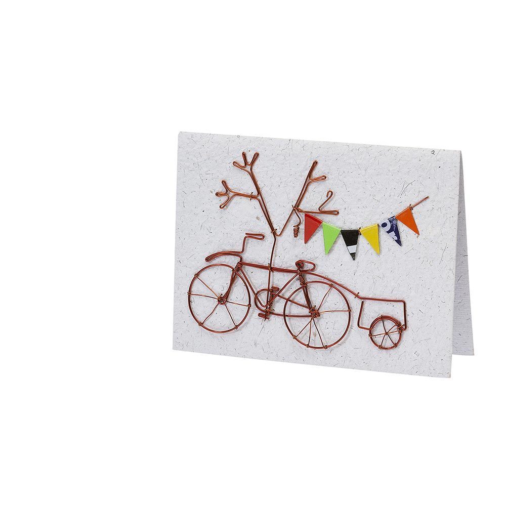 KE6-95-019 Grußkarte " Fahrrad", beige, mit Umschlag, handgeschöpftes Papier, Motiv aus Blech, 12x16