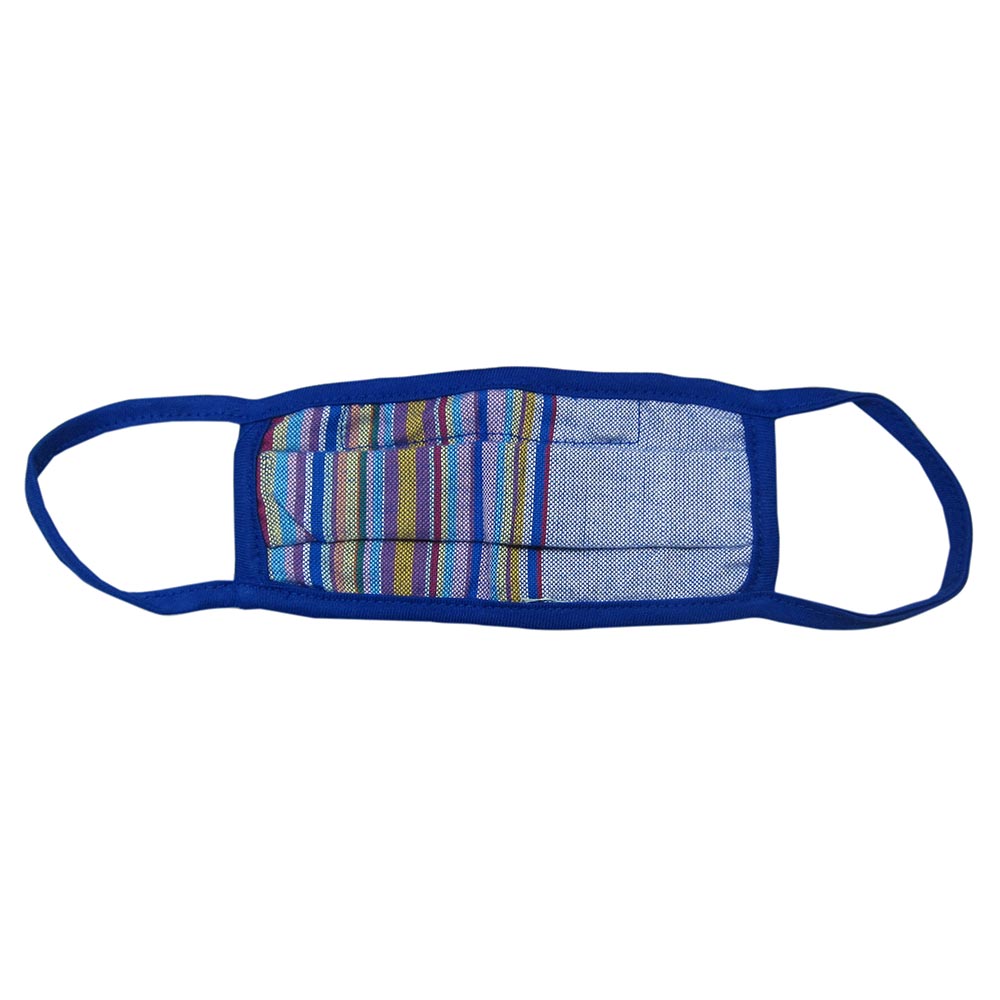 KE9-20-003-04-90 Mund- und Nasenbedeckung, Baumwolle, Behelfsmaske aus Kikoi Stoff außen, innen Jersey, mit elastischen Ohrenschlaufen, blau gestreift, XS