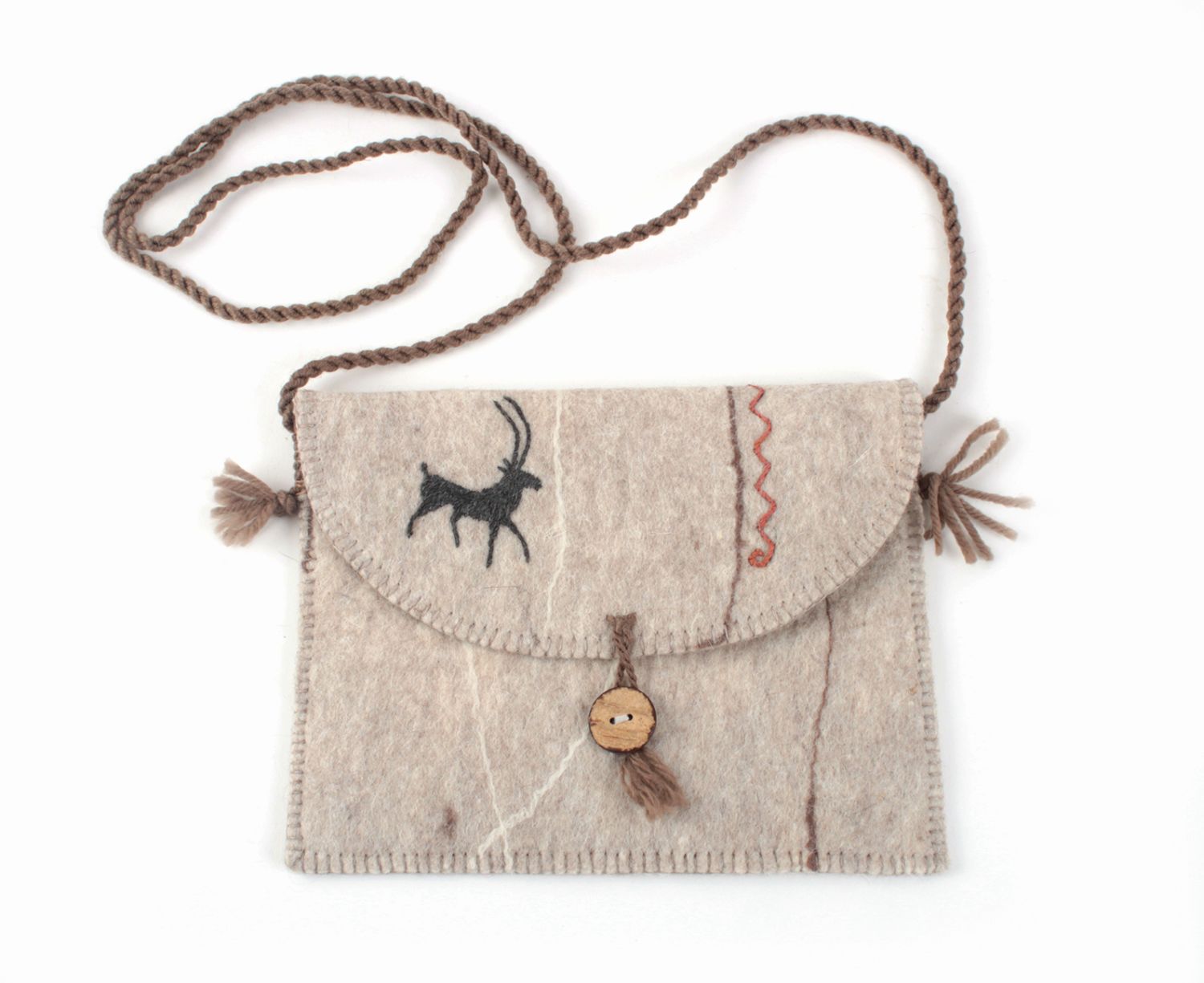 100% Wolle, beige mit Stickerei, 20 x 16 cm
