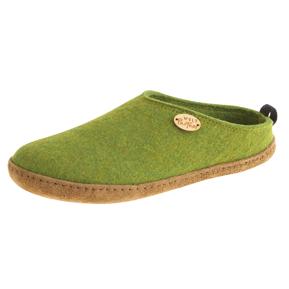 KG1-29-001-06-61 Hausschuhe, hinten offen, hellgrün, Wollfilz, Sohle vegetabil gegerbtes Leder, Größe 37