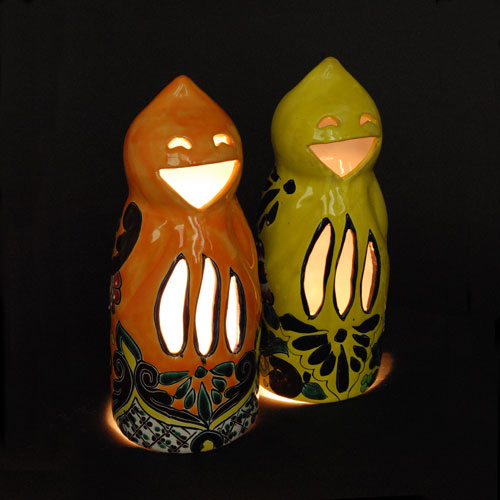 LUZ-903 Windlicht Fantasma aus Ton, bunt klein