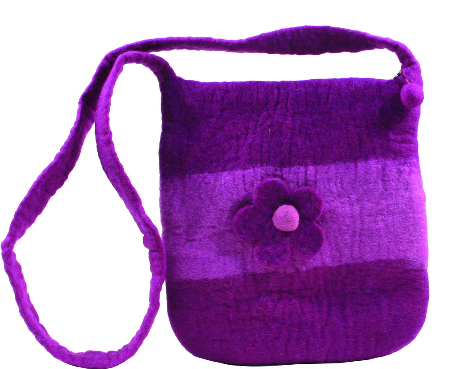 NE4-26-102 Schultertasche aus Filz, mit Blumenaplikation
