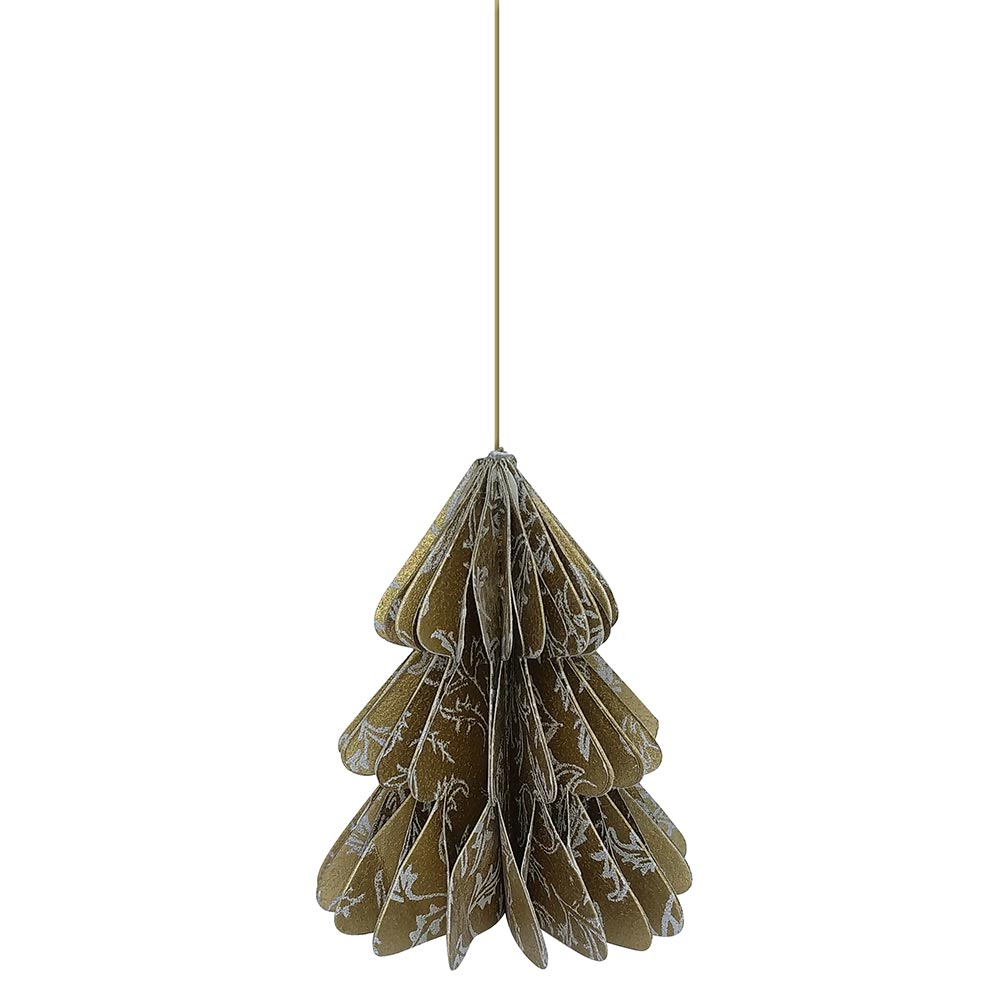 NE4-45-033-05 Anhänger "Baum", mit innenliegendem Magnet, goldfarben mit silberfarbenem Druck, handgeschöpftes Papier, 6x7