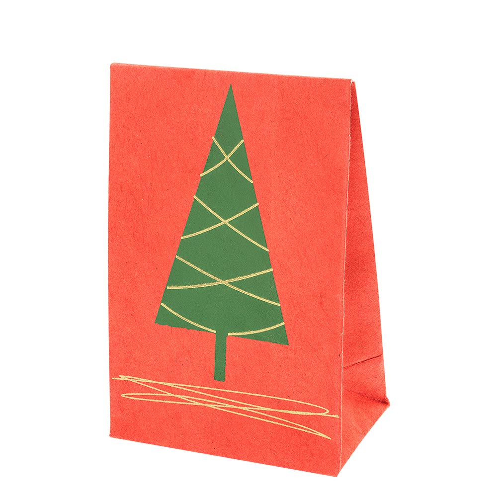 NE4-45-039-03 Geschenkverpackung "geschmückter Baum", mit Magnetverschluss, rot, handgeschöpftes Recyclingpapier, 12,5x8,2x5
