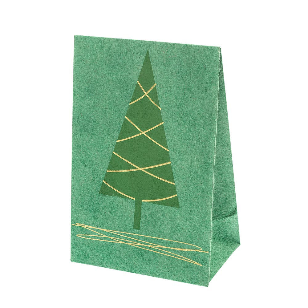 NE4-45-039-06 Geschenkverpackung "geschmückter Baum", mit Magnetverschluss, grün, handgeschöpftes Recyclingpapier, 12,5x8,2x5