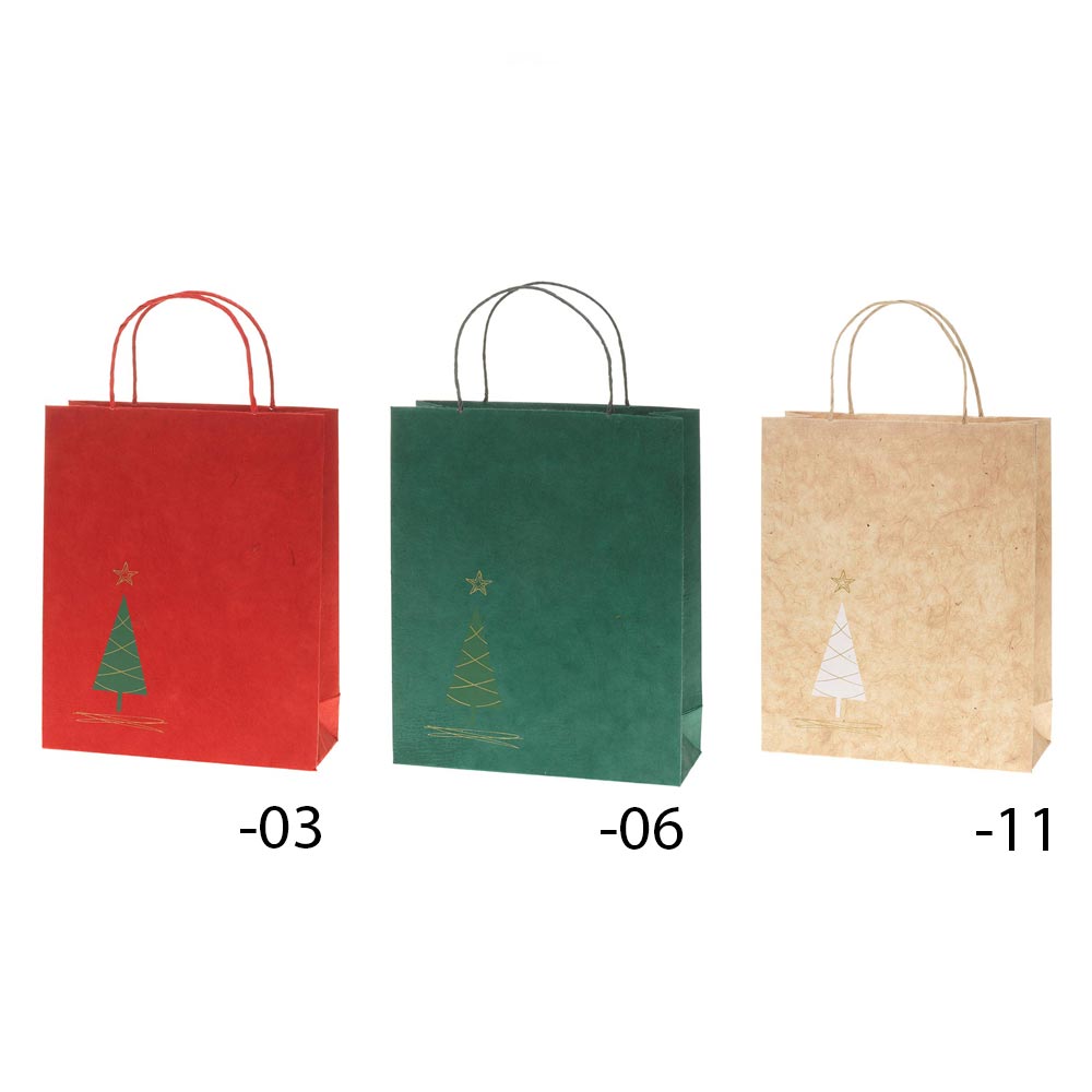 NE4-45-040-06 Geschenktasche "geschmückter Baum", groß, grün, handgeschöpftes Recyclingpapier, 28x23x8,5