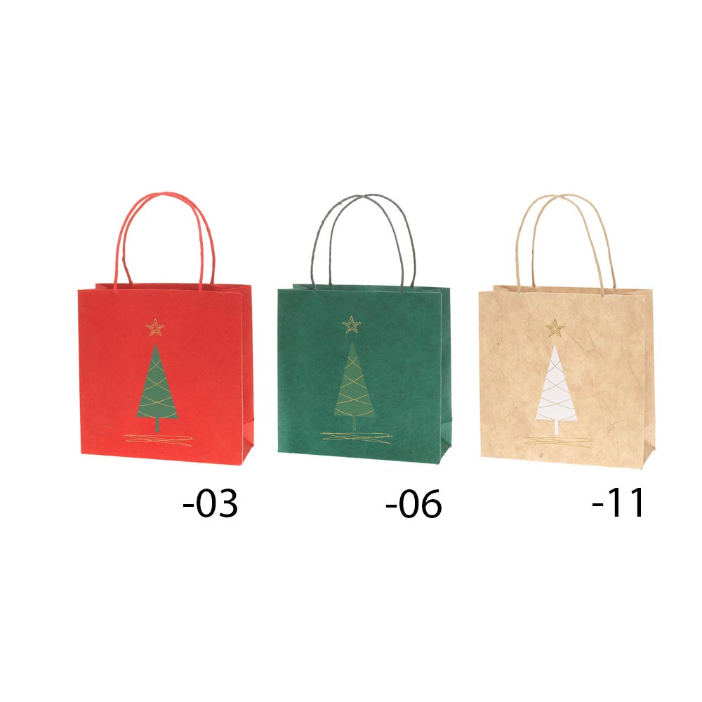 NE4-45-041-03 Geschenktasche "geschmückter Baum", klein, rot, handgeschöpftes Recyclingpapier, 18x18x7