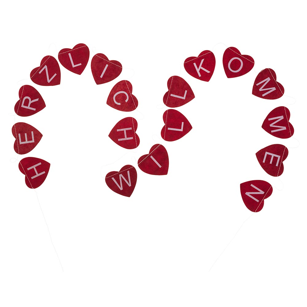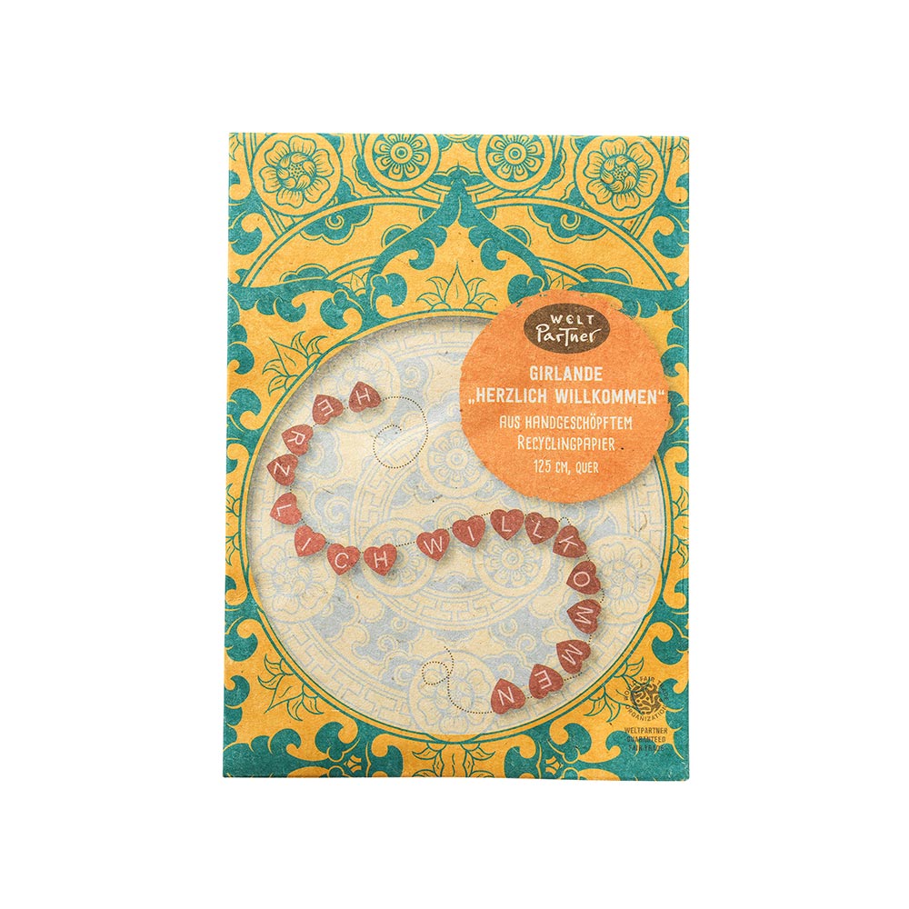 NE4-45-047 Girlande, "Herzlich Willkommen", Schrift in Herzen, handgeschöpftes Recyclingpapier, L125