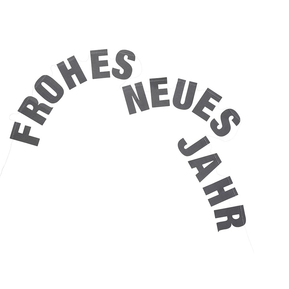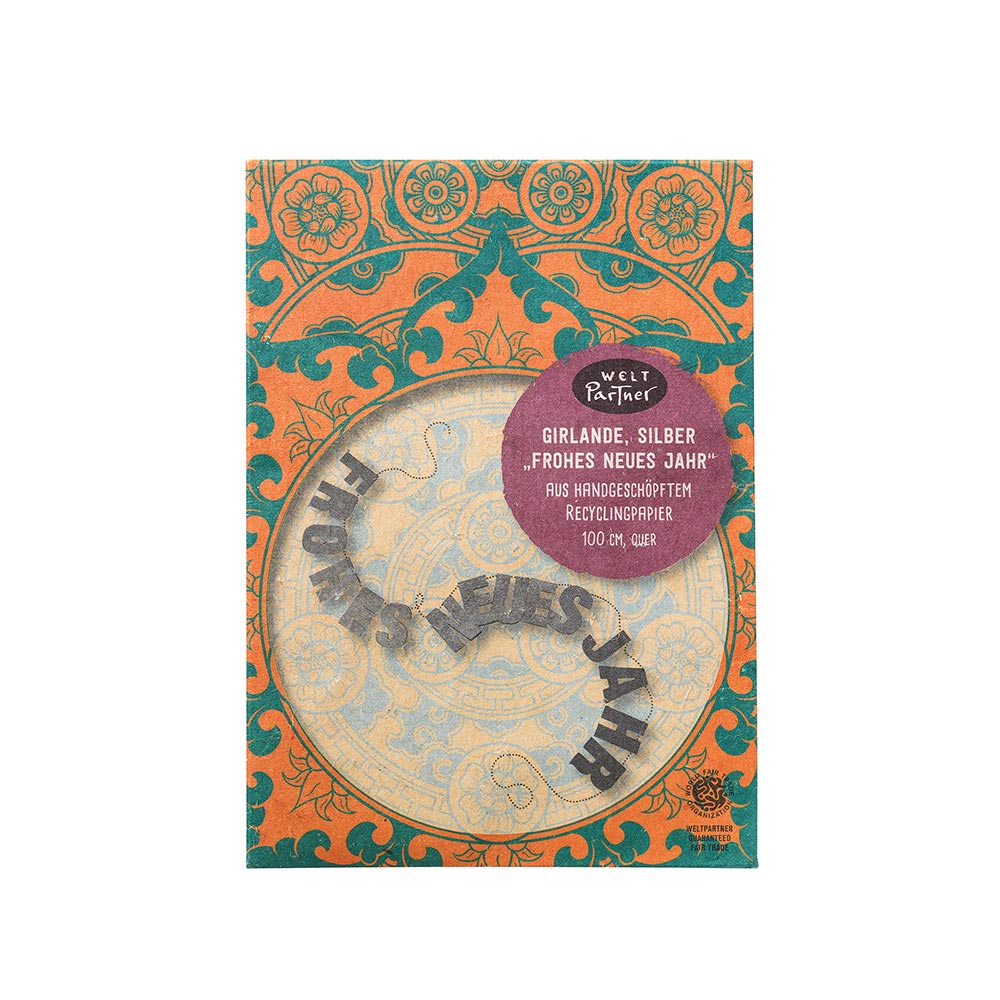 NE4-45-048 Girlande, "Frohes Neues Jahr", silberfarben, handgeschöpftes Recyclingpapier, L100
