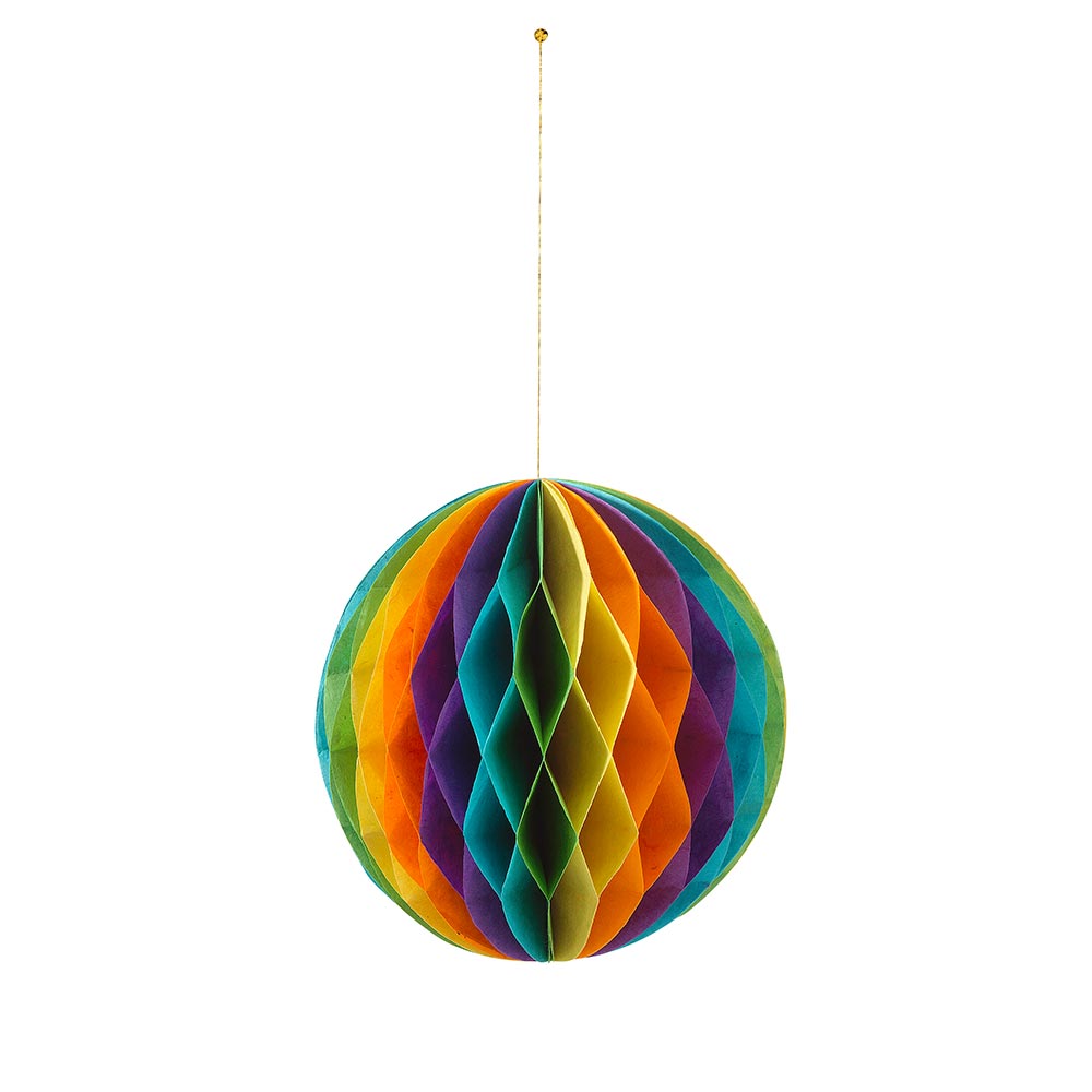 NE4-45-065 Anhänger Wabenball "Regenbogen", mit innenliegendem Magnet, handgeschöpftes Recyclingpapier, D20
