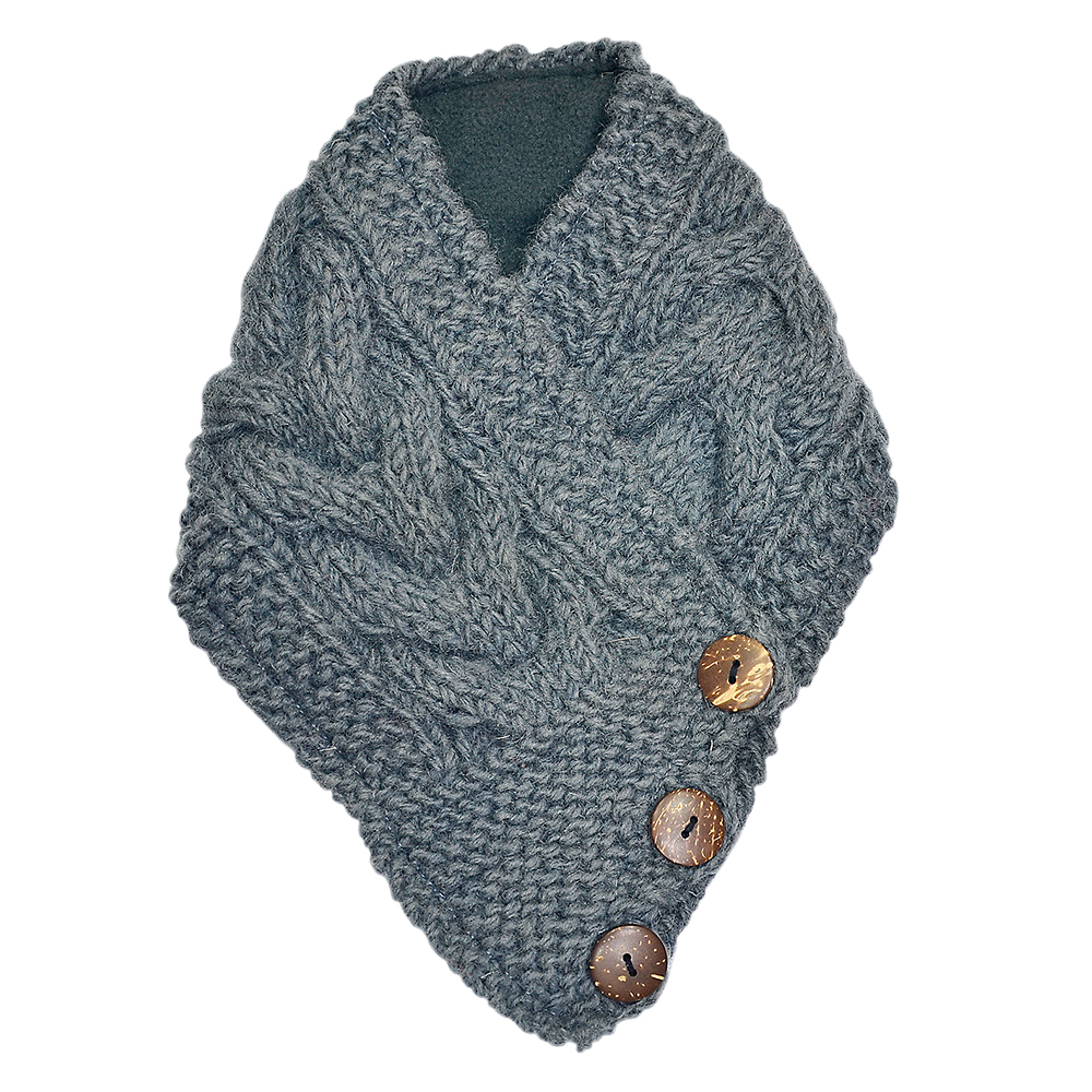 NE5-22-074-10 Nackenwärmer, gestricktes Zopfmuster, graublau, Wolle, innen: Fleece (Polyester), D oben 23, D unten 30