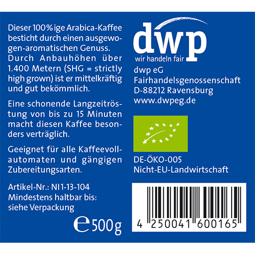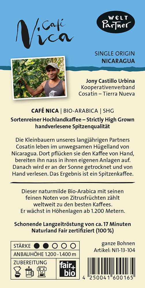 NI1-13-104 Café Nica, Bohne, bio°, Naturland Fair, SHG, 500g