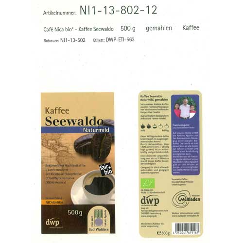 NI1-13-802-12 Agendakaffee Nicaragua SHG "Seewaldo", 500g gemahlen, bio°, Naturland Fair, für Bad Waldsee