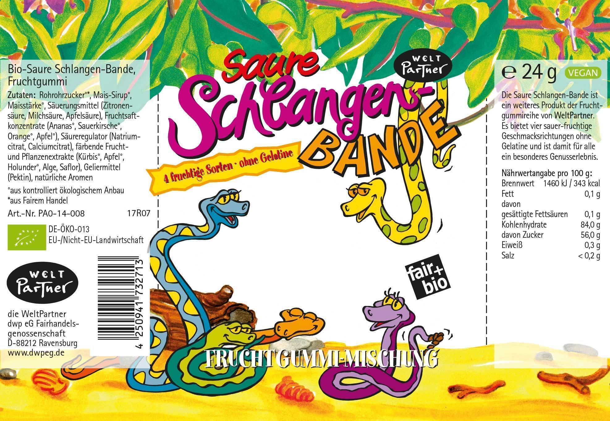 pa0-14-008 - Bio-Saure Schlangen Bande°, Fruchtgummi, 24g, Pröbchen, ohne Gelatine, vegan Zutaten