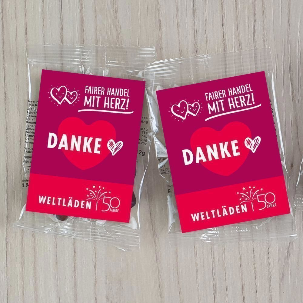 PA0-14-118 Bio-Sweethearts°, Fruchtgummi, 50 Jahre Weltladen, 150x12g, MHD 03.09.2024, mit Etikett