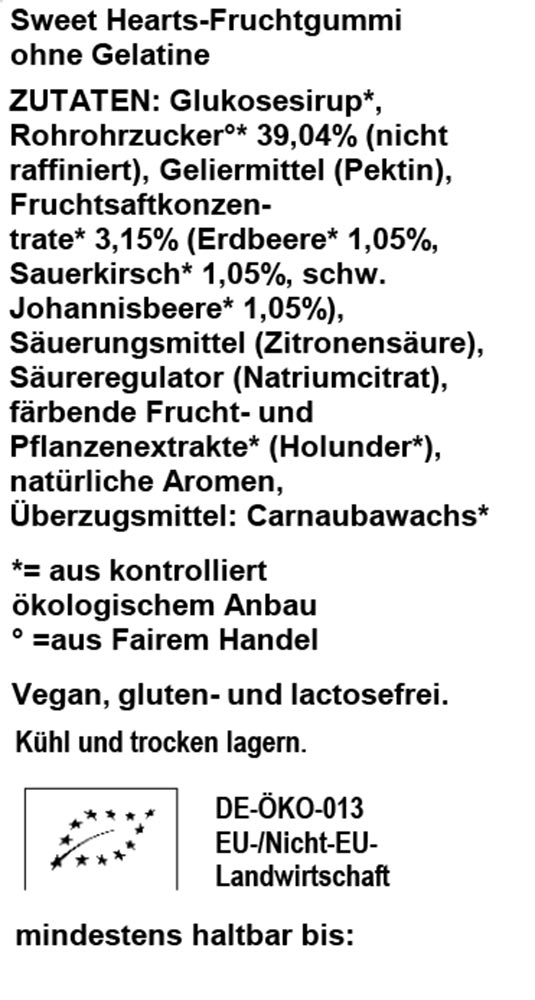 PA0-14-915 Bio-Sweethearts°, Fruchtgummi Giveaway, 450x12g, UNBEKLEBT, ohne Gelatine, vegan, in transparenter Folie