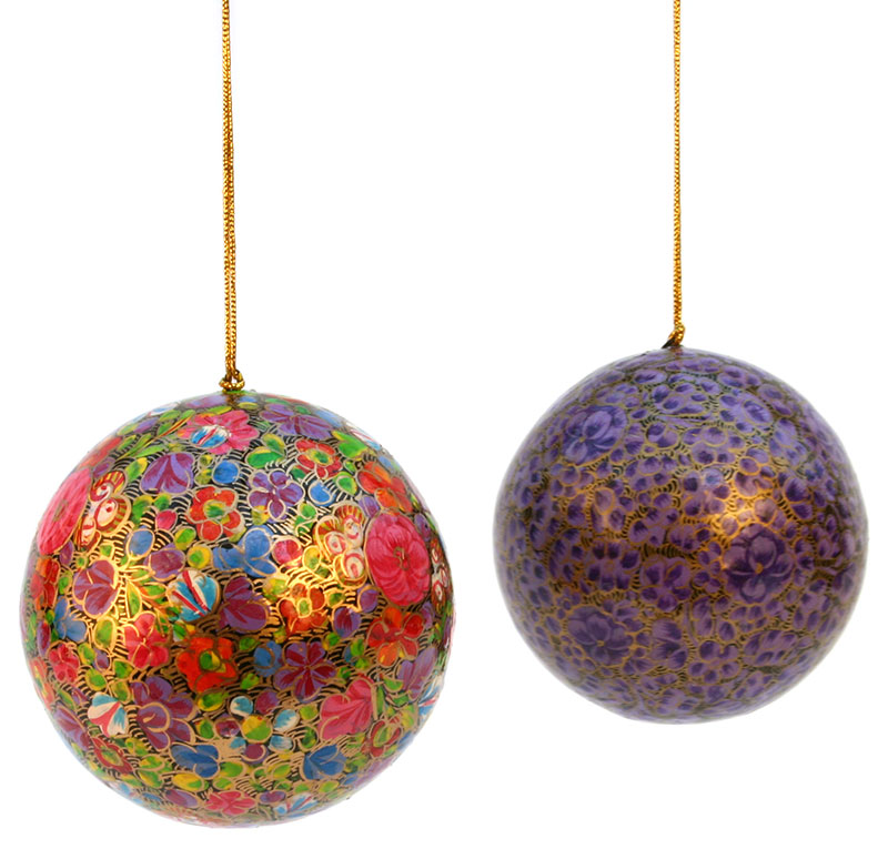 PAK-005 Kugel aus Pappmaché zum Aufhängen, buntbemalt Ø ca. 5cm