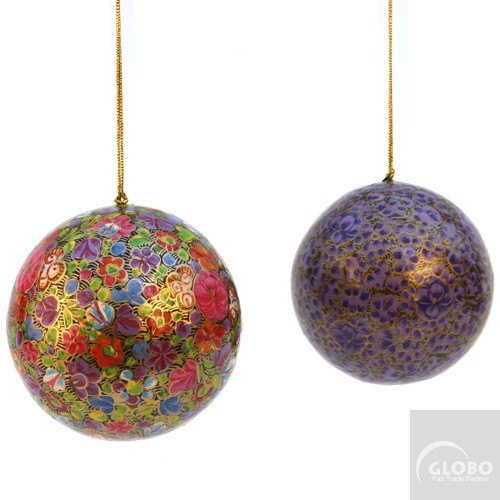 PAK-009 Kugel aus Pappmaché zum Aufhängen, buntbemalt Ø ca. 9cm