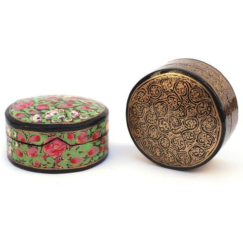 PAS-017 Dose aus Pappmaché, rund, buntbemalt ca. Ø 7, h 3,5cm