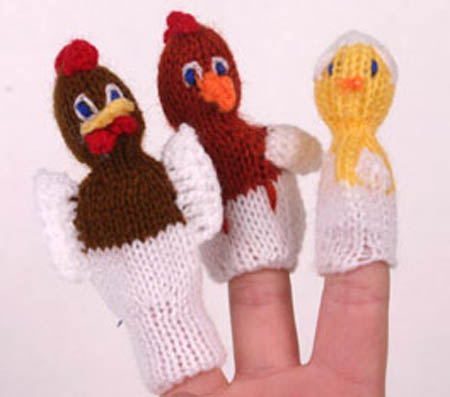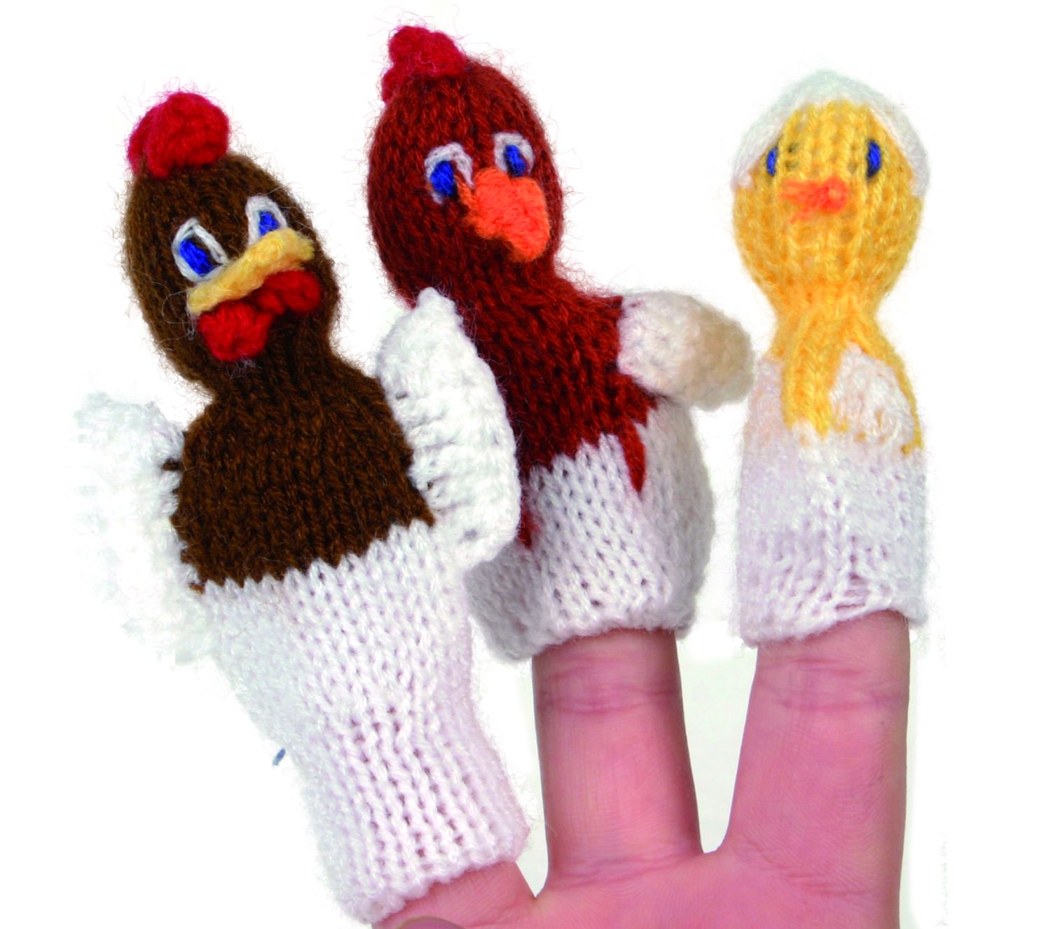 PE2-90-012 Gestrickte Fingerpuppen "Familie Huhn", 3er-Set