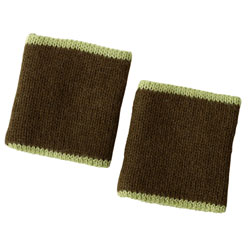 PE3-23-231-06 Pulswärmer für Kinder, Alpaka, braun mit grüner Borte
