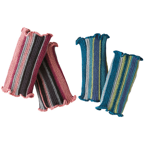 PE3-23-339-03 Pulswärmer, längs gestreift, Alpaka/Baumwolle, rot/orange/grün
