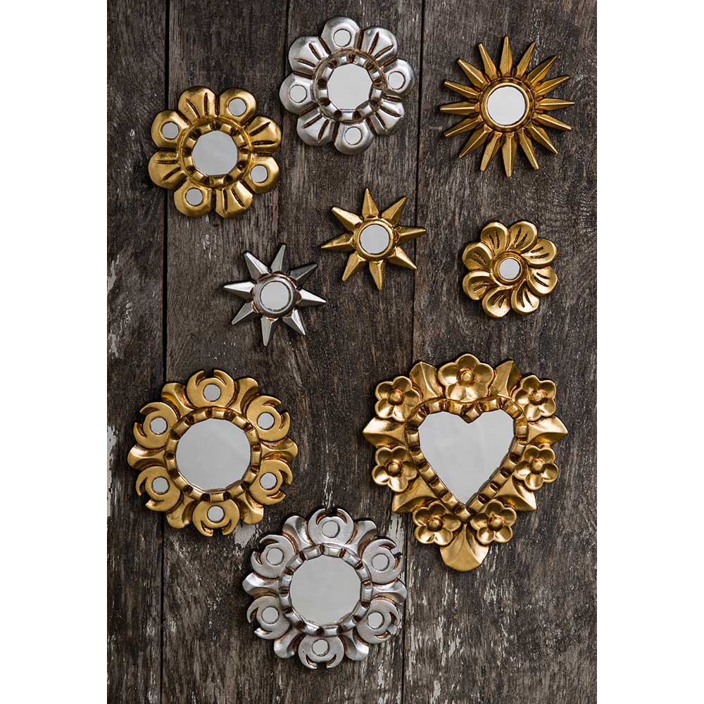 PE3-45-111 Spiegel, Motiv "Blume", silberfarben lackiert, Holz, 12x12