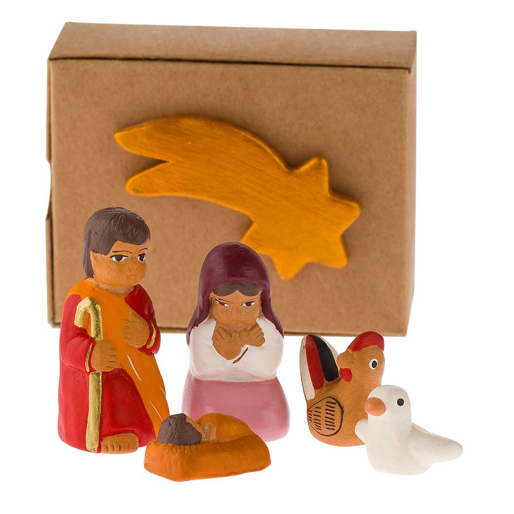 PE3-45-129 Kleinkrippe in Schachtel, Ton, Figuren H 4,5