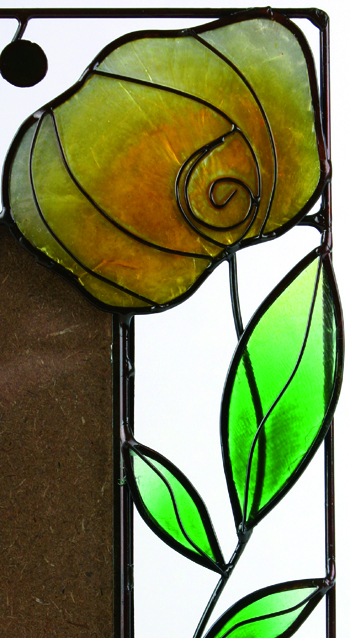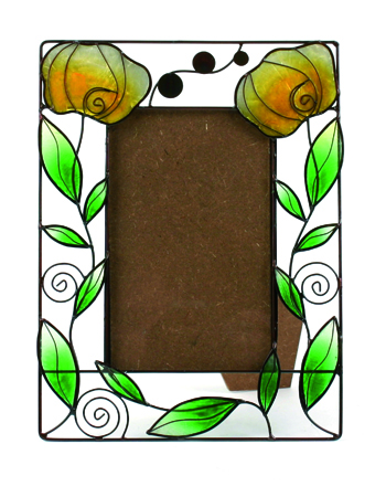 Metall und Capiz, grüne Ranke mit gelben Rosen 15 x 20 cm, für Foto 9 x 13 cm