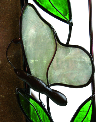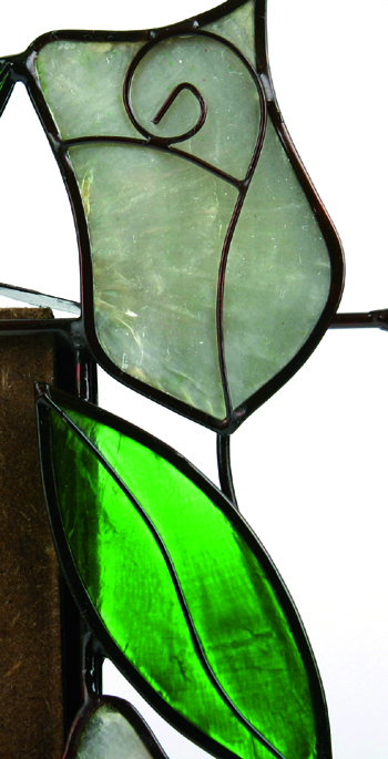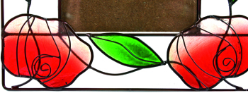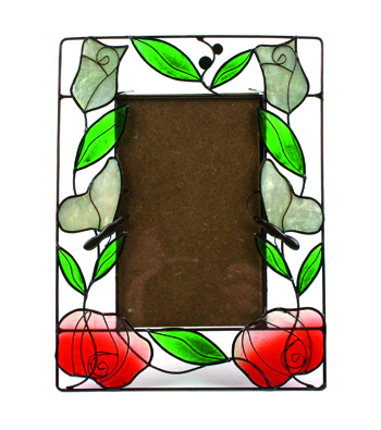 InfozeileMetall und Capiz, grüne Ranken mit roten Rosen und weißen Tulpen 15 x 20 cm, für Foto 9 x 13 cm