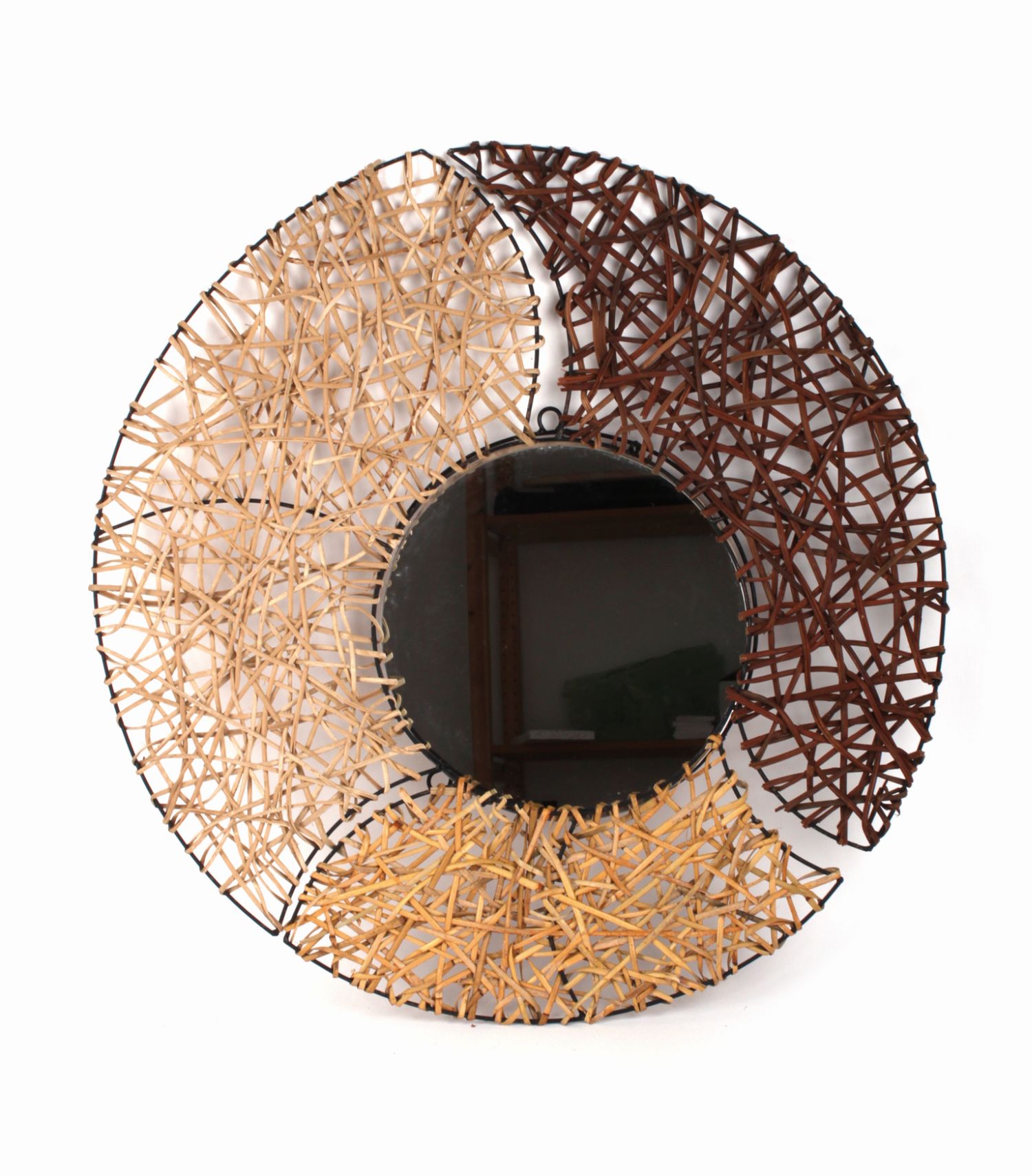 Rattan und Lukmoy-Fasern in Metallgestell, Ø 70 cm, Spiegelgröße Ø 29,5 cm