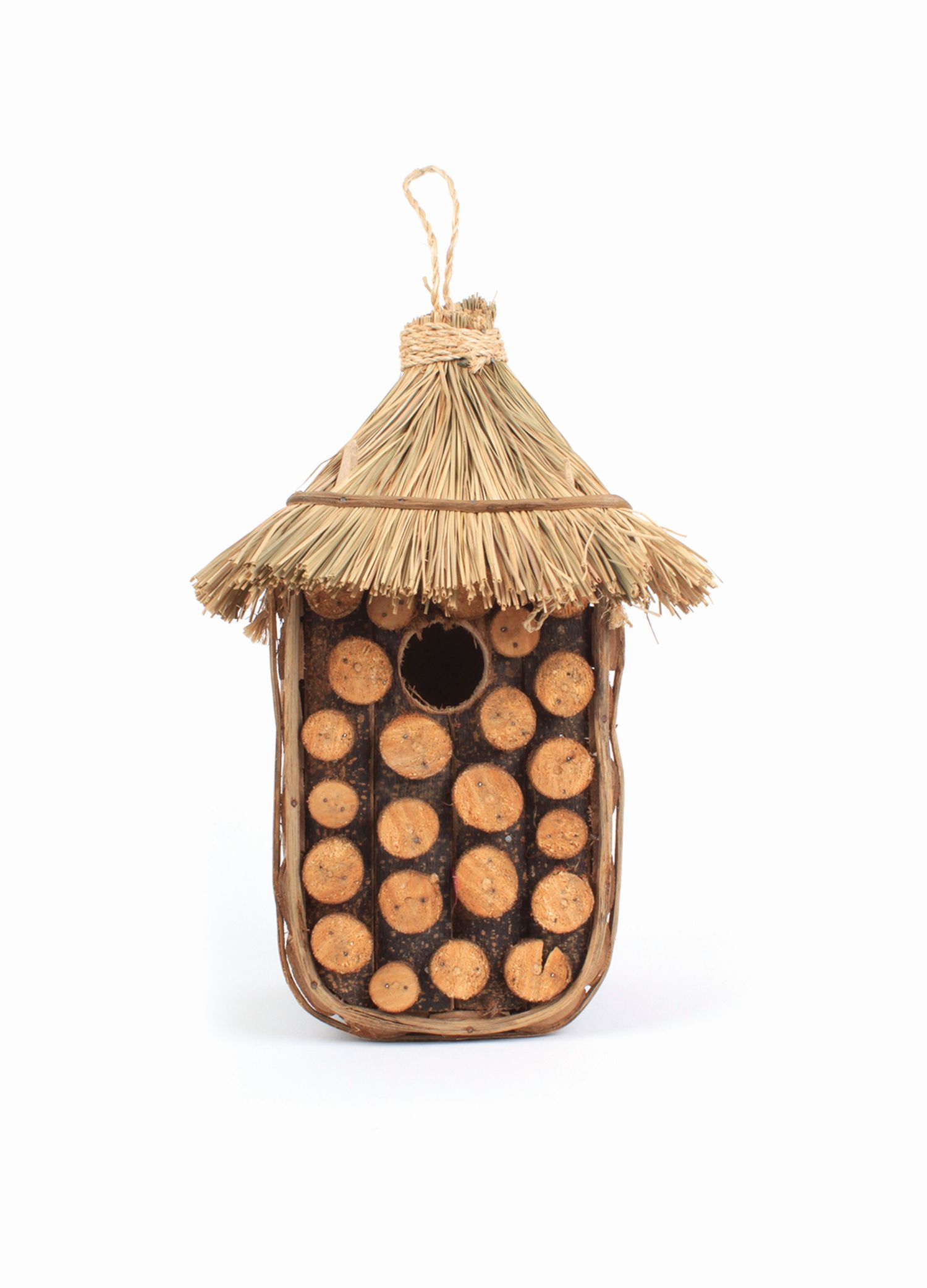 Takip-Asin-Holz mit Dach aus Cogon-Gras, natur, 22 x 21 x 33,5 cm, Ø Einflugloch 30 mm