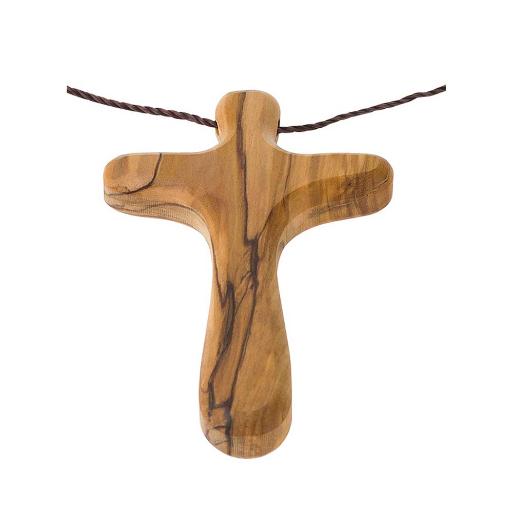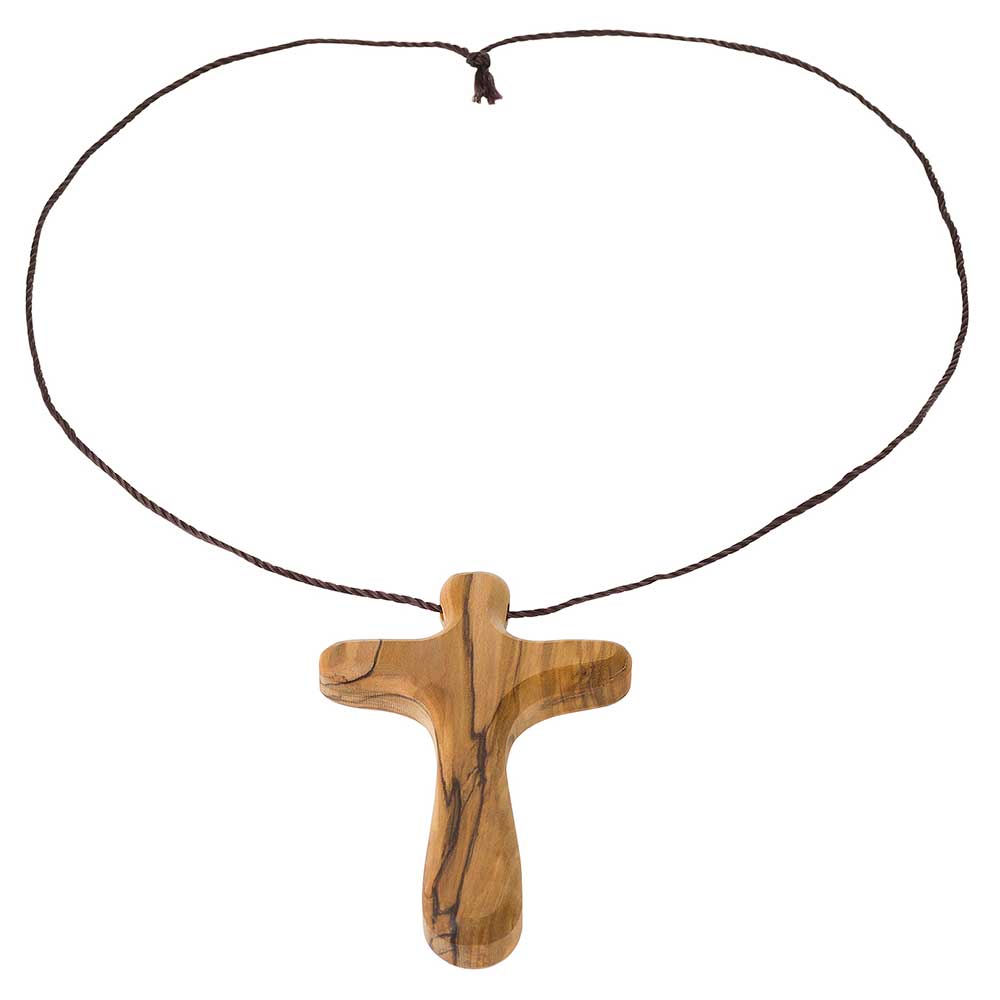 PL1-43-004 Halskette aus Bethlehem/Palästina, abgerundete Form, Olivenholzkreuz, mit Baumwollband zum Umhängen, L45, Kreuz B5/H9,5