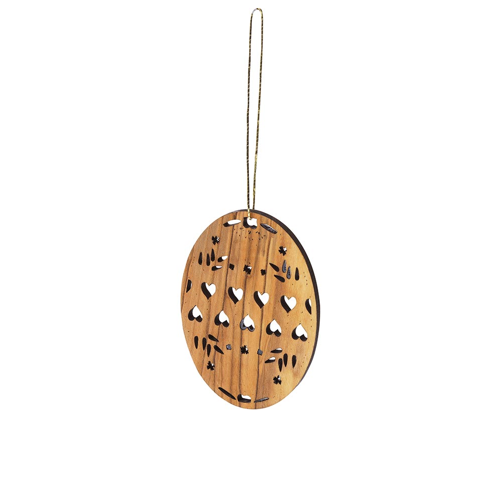 PL1-45-067 Anhänger "Osterei" aus Bethlehem/Palästina, ausgesägtes Muster "Herzen", Olivenholz, H6