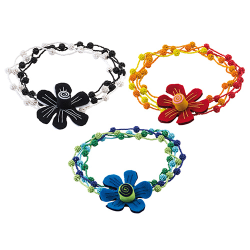 SA3-33-001-04 Halskette, zweifarbige Glasperlenkette mit dekorativer Filzblume, hellblau-dunkelblau, L46