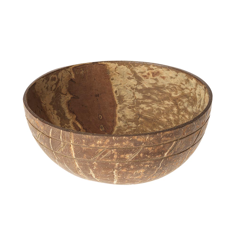 SL1-83-001-02 Kokosnussschale, naturbelassen, lebensmittelecht, 2 Längsstreifen und schräge Streifen, Kokosnuss, D ca. 13