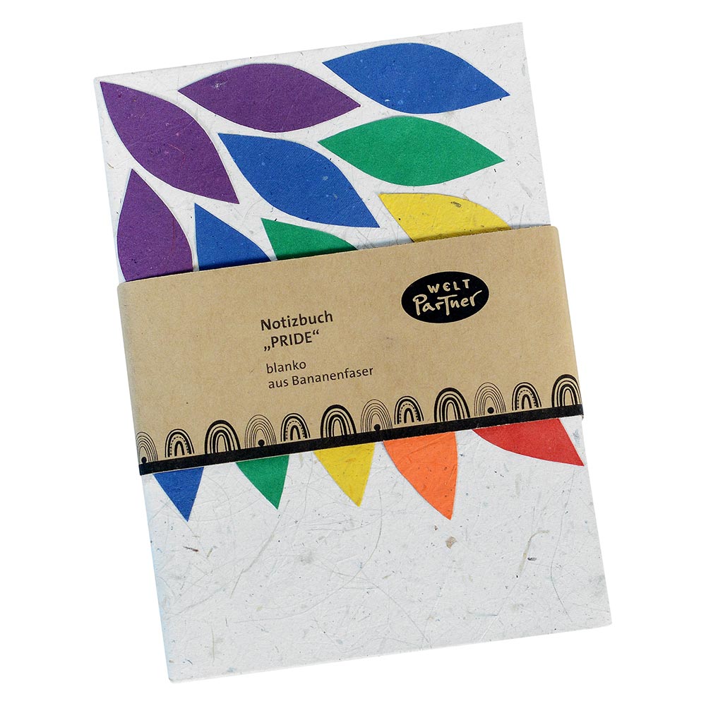 SL1-94-001 Notizbuch, blanko, PRIDE Kollektion, regenbogenfarben, 40 Seiten, Bananenfaser, 11x15,5